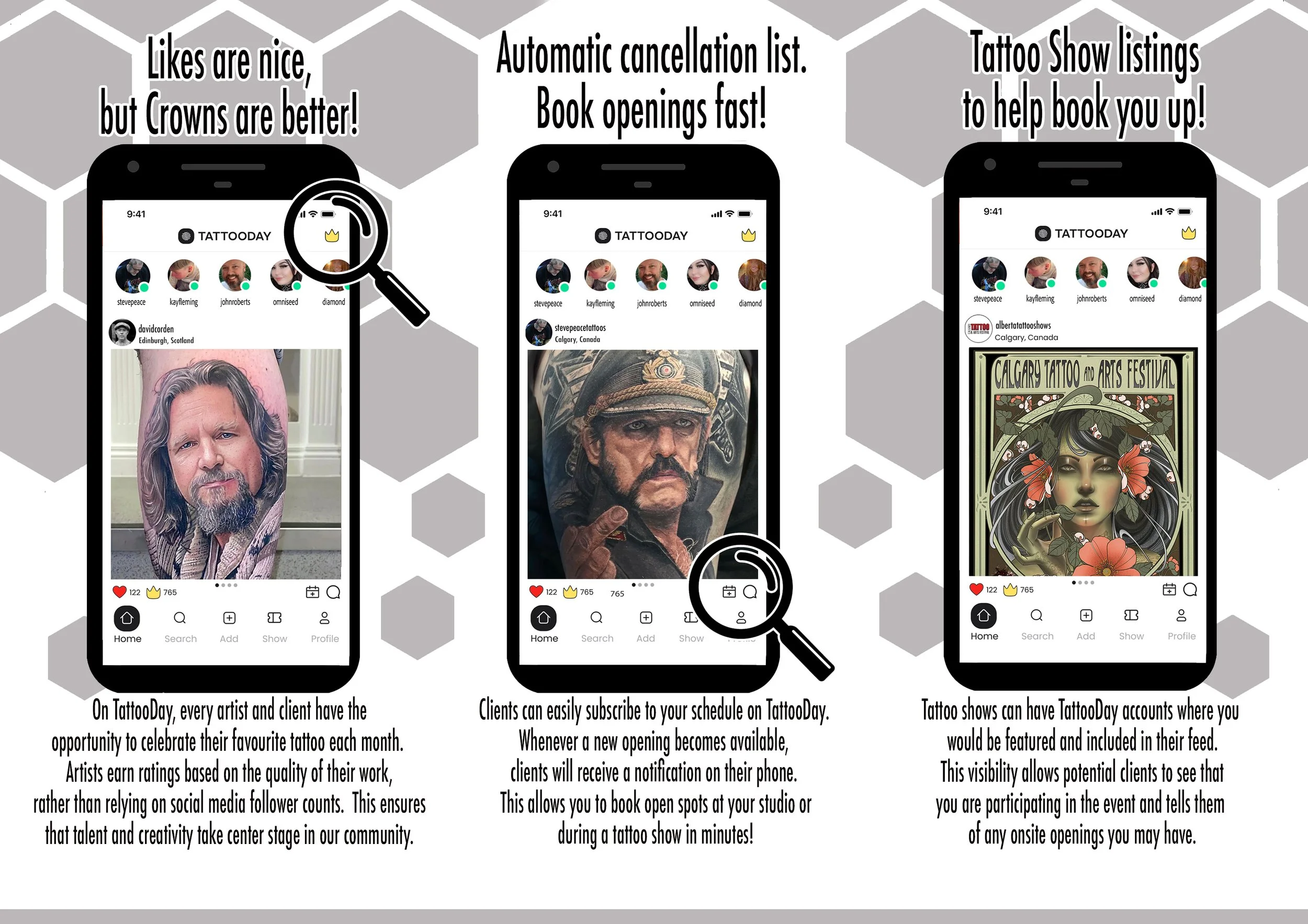 Are you an artist looking for a better way to promote your work and connect with other tattoo artists? Download the app and feel free to look around with a one month free trial. The video link below will explain how the app works.