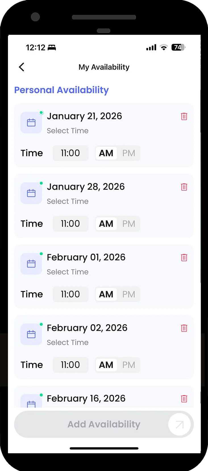 Encourage your clients to follow your schedule and receive mobile notifications whenever you add a new availability. (This feature will be available in our Jan 2026 update. Currently anyone who follows you will receive a notification)